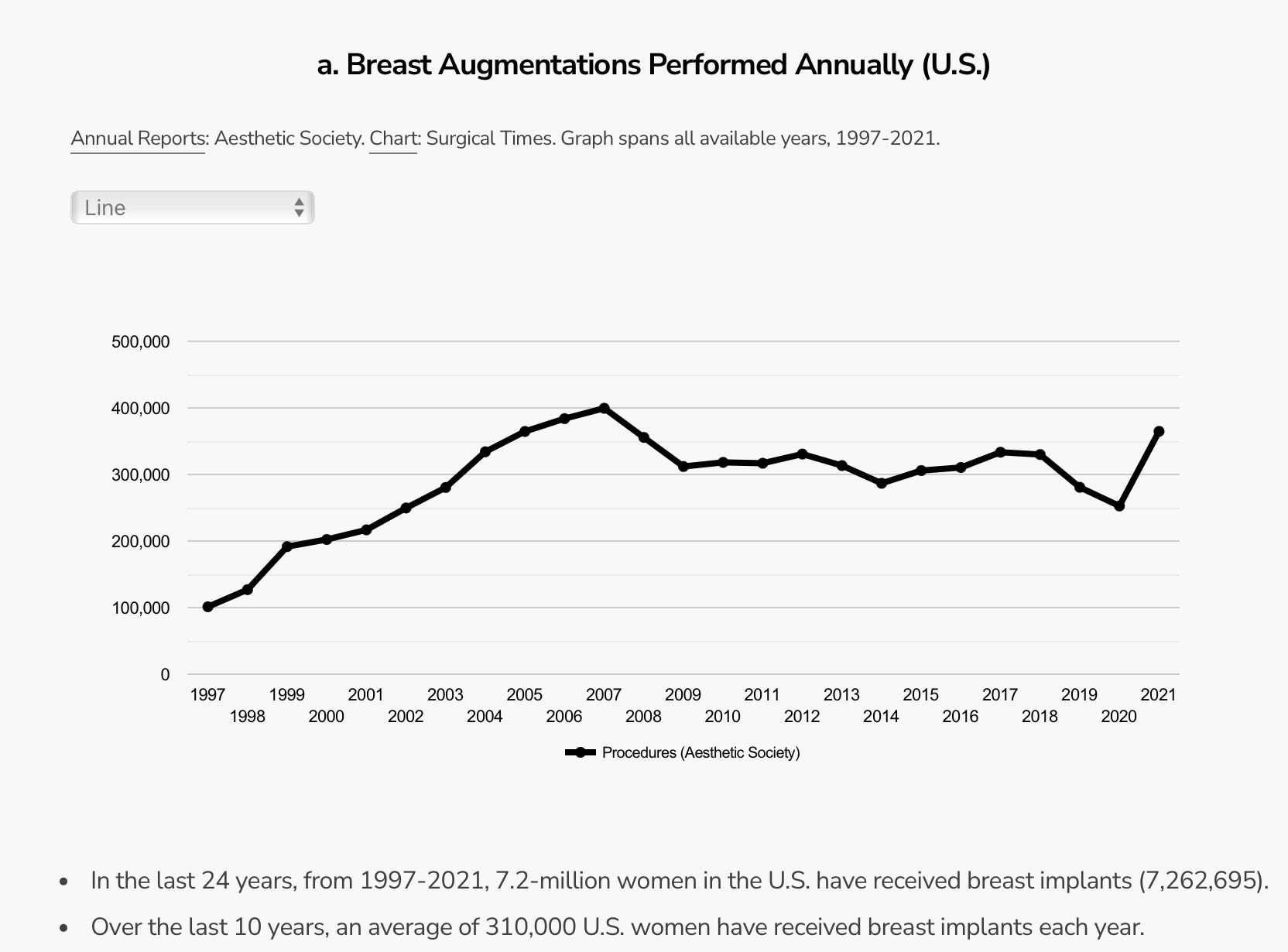 Translation – smaller boobs. No surprise, breast implant removals and/or replacement with smaller implants are trending significantly upwards.